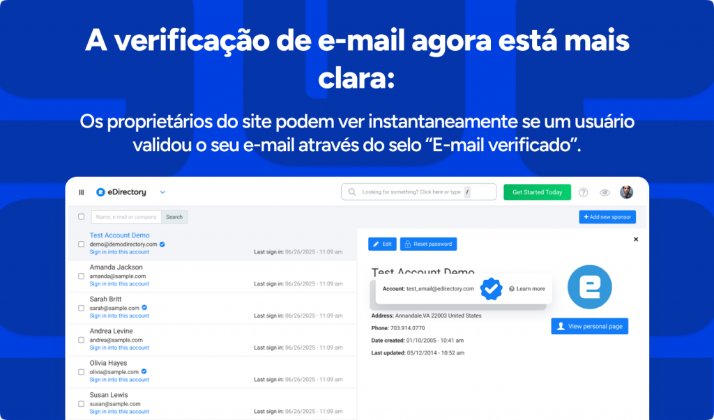 A verificação de e-mail agora está mais clara e transparente em toda a plataforma.